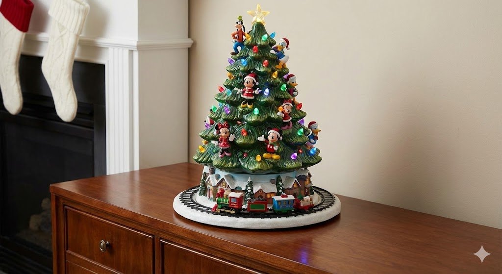 - Disney Tabletop Trees: Imagine a Christmas tree filled with over 50 hand-painted Disney characters—Mickey, Minnie, Pooh, and Cinderella—that rotates and plays classic Disney melodies.